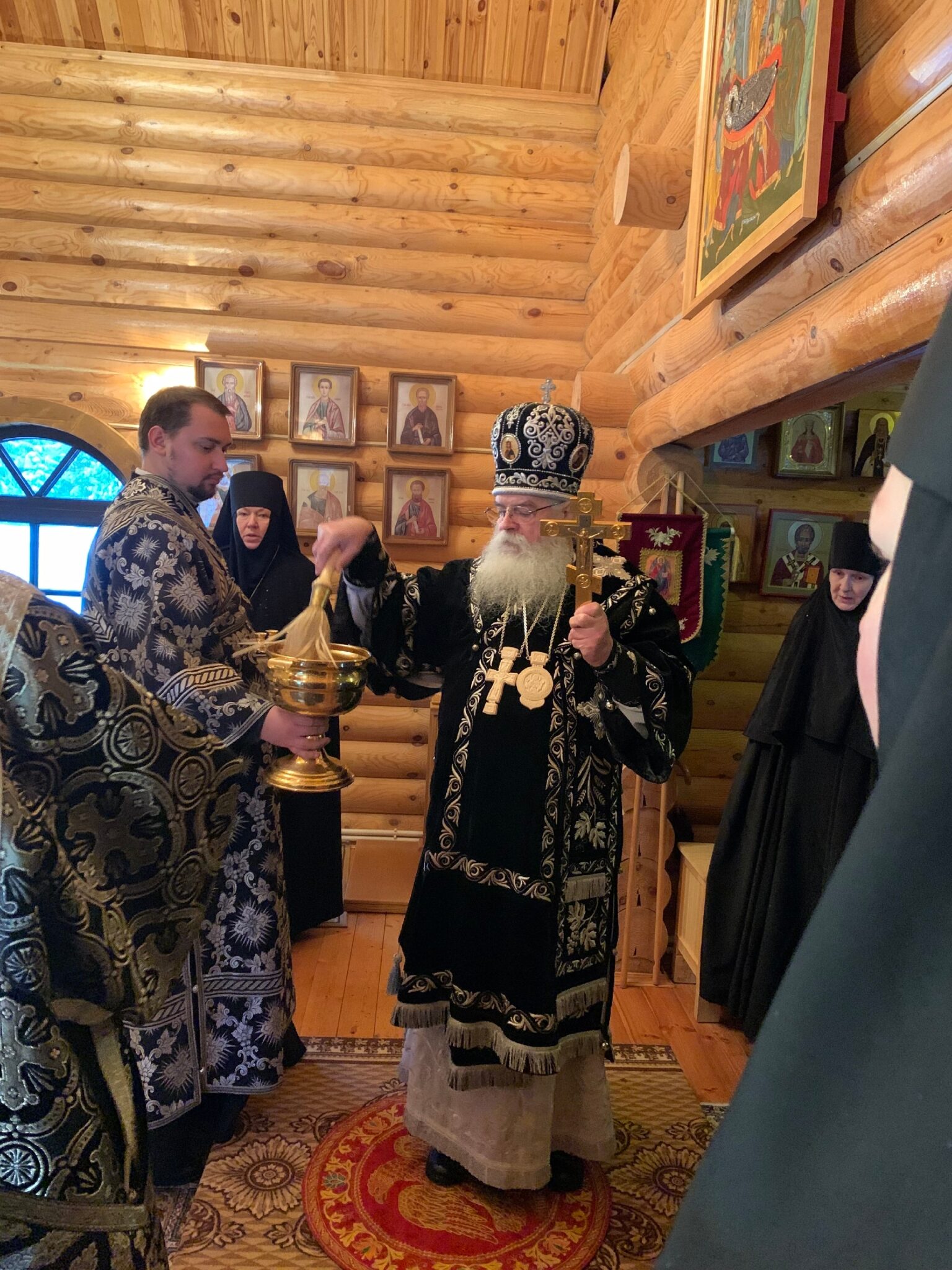 По завершении Божественной Литургии Владыка Константин поздравил игумению Варвару с сестрами с совершенным освящением храма и преподнес на молитвенную память об этом знаменательном событии икону преподобного Далмата Исетского с частицей его святых мощей.